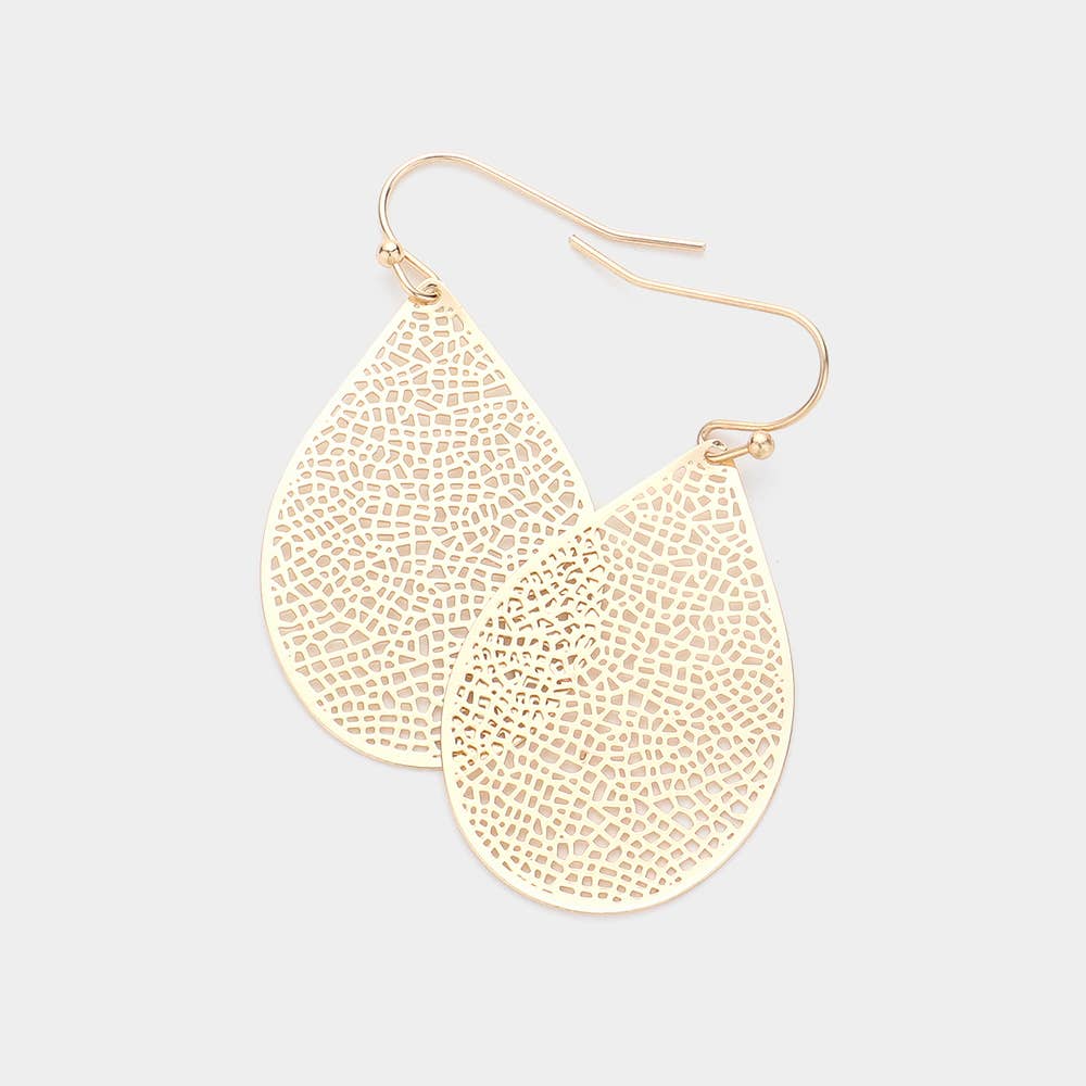 Brass Metal Filigree Teardrop Dangle Earrings • Size : 1" X 1.8" • Fish Hook Back • Brass • Lead and Nickel Compliant